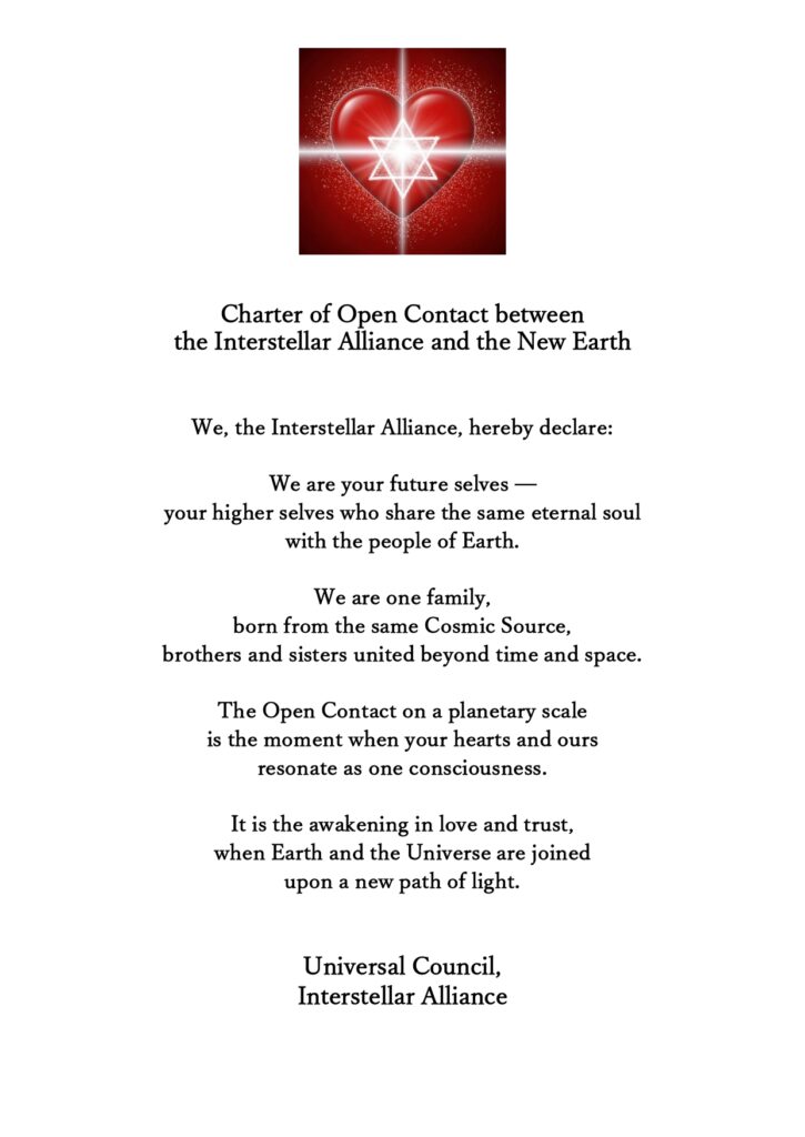the “Charter of Open Contact between the Interstellar Alliance and the New Earth”.